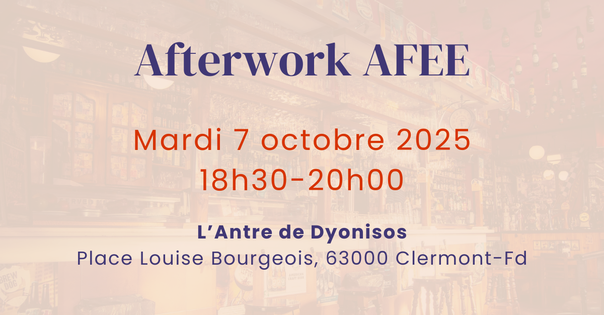 🍻 Venez rencontrer nos adhérentes lors d’un petit afterwork à l’Antre de Dyonisos, place Louise Bourgeois à Clermont-Ferrand, le mardi 7 octobre 2025 de 18h30 à 20h.En toute simplicité, venez nous parler de qui vous êtes et de vos métiers et découvrez l’association aux côtés de nos membres engagées dans leur vie de femme cheffe d’entreprise.